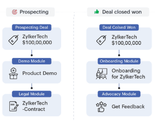 Status Synchronization: Crucially, the status of the contract is perpetually synchronized between Zoho Contracts and the relevant Zoho CRM Deal Stage. As the contract moves from 'Drafting' to 'Sent for Review,' 'Under Negotiation,' and finally 'Signed,' the CRM Deal Stage is automatically updated. This clinical synchronization ensures that the sales pipeline accurately reflects the real-time closure velocity, eliminating the common issue of 'stuck' deals and improving sales forecasting accuracy.
