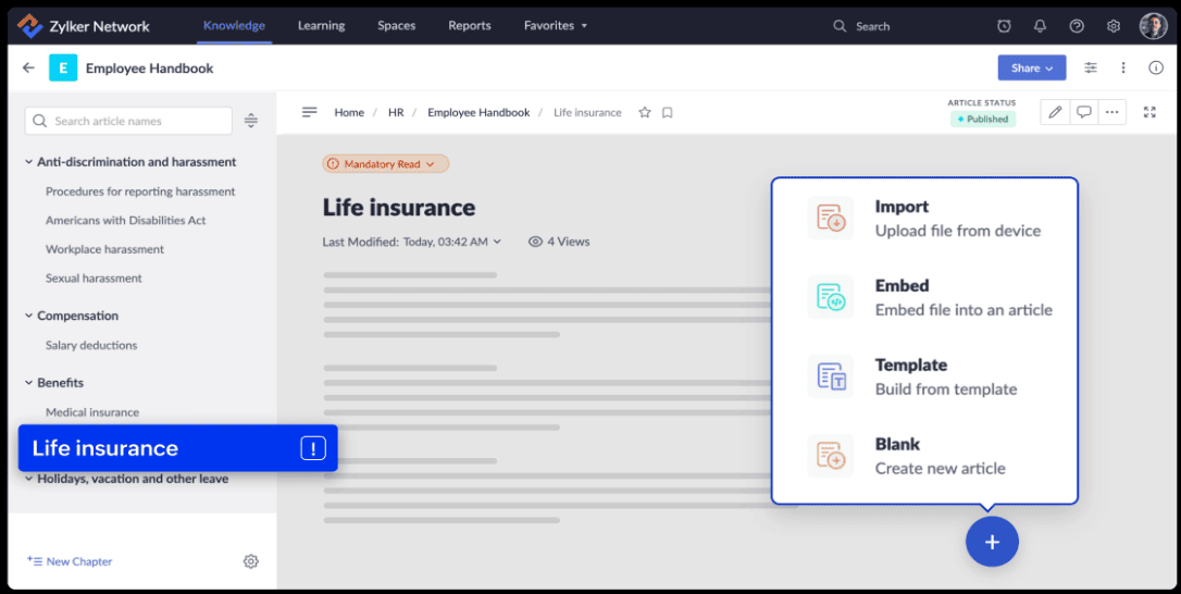 Zoho Learn solves the issue of dispersed institutional knowledge. When a seasoned employee leaves, their expertise doesn't vanish; it remains codified within the centralized system. This is crucial for rapidly scaling organizations or those with high staff turnover.